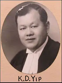 Kew Dock Yip (葉求鐸; pinyin: Yè Qiúduó; 1906–2001) was community leader in Toronto's First Chinatown, the first Canadian lawyer of Chinese descent, and played a critical role in helping repeal the Canadian Chinese Exclusion Act in 1947. He is the third youngest son of Yip Sang, a prominent Chinese merchant and paymaster of CP Railway, in Vancouver in the 1900s.[1][2]