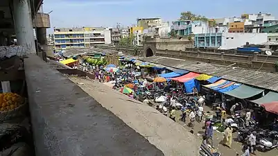 K R Market (Krishnarajendra Market), also known as City Market, is the largest wholesale market dealing with commodities in Bangalore, India. It is named after Krishnarajendra Wodeyar, a former ruler of the princely state of Mysore. The market is located in the Kalasipalya area, adjacent to the Tipu Sultan's Summer Palace, on Mysore Road at its junction with Krishnarajendra Road. It is the first locality in the whole of Asia to get electricity and considered to be one of the biggest flower markets in Asia.[1]