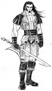 Kabal is a fictional character in the Mortal Kombat fighting game franchise by Midway Games and NetherRealm Studios. He debuted in Mortal Kombat 3 (1995) as a former member of the Black Dragon criminal organization. Chosen by the thunder god Raiden to help defend Earthrealm, he pursues redemption by battling invading forces from Outworld. Subsequent installments, however, give Kabal a more villainous depiction as the leader of a new Black Dragon clan in the original timeline and an undead revenant in the reboot. Due to injuries suffered against Outworld's warriors, the character wears a specialized helmet with a built-in life-support system. He possesses superhuman speed and uses a pair of hookswords as his primary weapon.