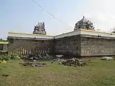 The temple has a flat gateway tower and all the shrines of the temple are enclosed in concentric rectangular granite walls. There is a sixteen pillar hall in front the gateway that has sculpted pillars dating back to the 16th century. The temple occupies an area of around 2 acres (0.81 ha). The temple tank is located adjacent to the sixteen pillared hall. The central shrine houses the image of Kachabeswarar in the form of Lingam. The shrine of Irulneeki Thayar (also called Anthaga Nivarini, facing West is located in the Mahamandapam leading to the sanctum. The central shrine is approached through the shrine of Thyagaraja located adjacent to the sanctum. As in other Shiva temples in Tamil Nadu, the shrines of Vinayaka, Murugan, Navagraha, Chandikesa and Durga are located around the precinct of the main shrine. There is a shrine depicting Shiva offering food to Sundarar on the Western side.[3] The sanctum is approached through a side entrance. The sanctum is in the form of a moat. The first precinct around the sanctum has the images of Vinayaka, Surya, various images of Nagalinga, Valli Deivanai, Subramanya, Nataraja, images of Nalvar. The shrine of Amman is a West facing shrine where the deity Anjanatchiamman is sported in standing posture.[1] The original complex is believed to have been built by Cholas, while the present masonry structure was built during the Nayak during the 16th century. In modern times, the temple is maintained and administered by the Hindu Religious and Charitable Endowments Department of the Government of Tamil Nadu.[4]