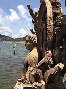 ![]() Sculptured statues of the Buddha and other deities. (The dam of Kotmale reservoir can be seen left side) | |