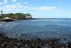The Kohala Center sponsors a program called ReefTeach to educate visitors about the preservation of the bay, and has produced some educational videos on the history of the area.[17] An educational festival called the Ocean Fair is held here as part of the Kona Earth Festival, associated with Earth Day.[18] The hotel is now called the Outrigger Keauhou Beach Resort.[19] Two more Heiaus on this point are being reconstructed. Directly south of this point is another historic area, Keauhou Bay.