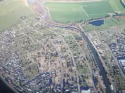![]() Kaiapoi River through Kaiapoi, with the Courtenay Stream on the top right | |