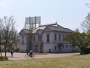 Most Kaikosha buildings that survived the war still exist despite having been commandeered by SCAP during the subsequent occupation. Notable among them are the 7th Division's Asahikawa Kaikosha, which is today the Asahikawa Museum of Sculpture, the 8th Division's Hirosaki Kaikosha which is today a memorial hall open to the public,[5] and the 11th Division's Zentsūji Kaikosha which is today used for a variety of purposes including as the site of placement exams for members of the Self-Defense Force, of regular recitals of the JSDF band, and of events and exchanges between local civilians and JSDF personnel, and there is even a Kaikosha Café in a separate building recently established beside the main building.[6] All three of these buildings have received national recognition as Important Cultural Properties of Japan.