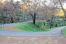 To overcome a steep gradient up the Darling Scarp, a zig zag was built between Ridge Hill and Gooseberry Hill stations, being cheaper to build than a continuous gradient line. It closed on 22 July 1949 along with the rest of the line, with the track removed in 1952 and converted into a narrow bitumen road. The road is one-way for most of the Zig Zag and is closed to vehicles between the hours of 8:30 PM and 11 AM.[2][3][4]
