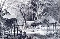 Fifteen Kali’na, all members of one family living in Sinnamary and Iracoubo, were sent to Pau:wa ("The Land of the Whites") in July 1882.[19] Almost nothing is known about them, except their names[21] and the fact that they were housed in huts on the lawn of the Jardin d'Acclimatation. The trip lasted four months, including three in Paris and a month's journey by boat (round trip). They were accompanied by a Creole who acted as intermediary and, presumably, interpreter.[22] There are several portraits of them, taken by photographer Pierre Petit.[23]