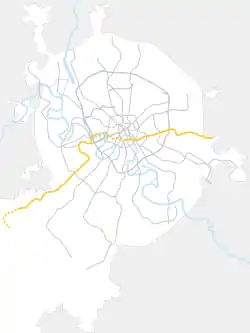 The first part of the Solntsevsky radial, between Park Pobedy and Delovoy Tsentr (with a transfer to Vystavochnaya), opened in January 2014. It is not yet connected to the rest of Kalininskaya line. A further extension of this line further south from Park Pobedy to Ramenki was opened on 16 March 2017.[3] The terminus Rasskazovka, about 5 km from Vnukovo International Airport.