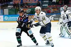 ![]() Kalle Kaijomaa (white jersey) on 20 September 2014 in Kärpät - Blues match | |||