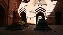 The old town, which is on the Yamuna river has the ruin of a fort, and several temples of interest, while in the neighborhood are many ancient tombs.[2] Away from the river to the south-east is a lofty modern town ornamented with representations of the battles of the Ramayana.