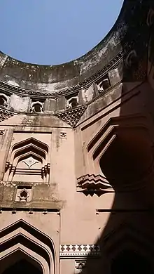 In 1196 it fell to Qutb-ud-din Aibak, the viceroy of Mohammed Ghori, and during the subsequent Muslim period it played a significant part in the history of central India. In the early 16th Century Rajput king of Chittor Rana Sanga defeated Ibrahim Lodhi twice and establish his control over some parts of Uttar Pradesh including Kalpi and Chandawar and appointed Manik Chand Chauhan to rule there.[3] Rana Sanga also died in Kalpi in January 1528 poisoned by his own Nobles.[4] During Akbar's reign, Kalpi was a governor's seat and had a mint for copper coinage.[2] The witty Raja Birbal of Akbar's court is considered to be born near this city. About the middle of the 18th century it passed into the hands of the Marathas.[2]