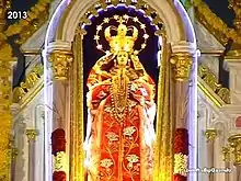 The feast day recognizing Mary's passage into Heaven is celebrated as the Feast of the Assumption of the Blessed Virgin Mary every year on 15 August there. The feast is preceded by hoisting of the flag on 6 August and ends with a Eucharistic procession around the village on 15 August evening. During these ten days of the feast, about 2 to 4 lakhs of pilgrims visit the church. The traditional Car Procession around the village with the miraculous statue of Our Lady of Assumption is the highlight of the feast. The car procession starts with a special Holy Mass on 14 August midnight and ends with a public procession of the Eucharist on 15 August evening.