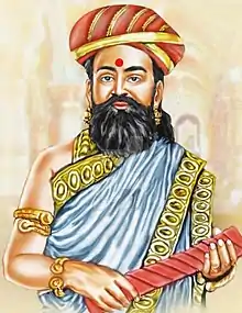 Kambar or Kavichakravarthy Kamban (1180 CE–1250 CE)[1] was a medieval Tamil poet and the author of the Ramavataram, popularly known as Kambaramayanam, the Tamil version of the epic Ramayana.[2] Kambar also authored other literary works in Tamil, such as Thirukkai Vazhakkam, Erezhupathu, Silaiyezhupathu, Kangai Puranam, Sadagopar Anthathi and Saraswati Anthathi.[2]
