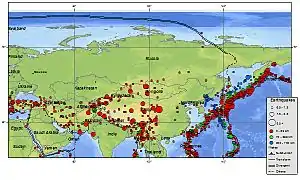 Many major earthquakes have occurred in the region of the Kamchatka Peninsula in far eastern Russia. Events in 1737, 1923 and 1952, were megathrust earthquakes and caused tsunamis.[1][2] There are many more earthquakes and tsunamis originating from the region.
