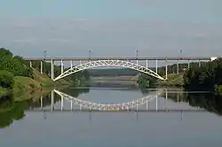 - unique project Railway bridge over Iset river (Rosnovsky V.A., 1939, 140 m arch bridge of steel tubes filled with concrete),[11]
