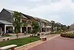 Kampot (Khmer: ក្រុងកំពត) is a city in southern Cambodia and the capital of Kampot Province. It is on the Praek Tuek Chhu River southeast of the Elephant Mountains and around 5 km (3 mi) from the Gulf of Thailand.[2] Kampot was the capital of the Circonscription Résidentielle de Kampot under French rule and Cambodia's most important seaport after the loss of the Mekong Delta and before the establishment of Sihanoukville.[3] Its center is, unlike most Cambodian provincial capitals, composed of 19th century French colonial architecture. The region and town are known for high quality pepper, which is exported worldwide.[4] It is also known for its Kampot fish sauce,[5] and durian.[6] The government and the Ministry of Culture and Fine Art have been preparing documents to nominate The Old Town of Kampot for admission to the UNESCO World Heritage Site list (along with The Old Town of Battambang and The Old Town of Kratie) since 2017.