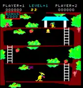 Kangaroo (Japanese: カンガルー) is a four-screen platform game released in arcades in 1982 by Sun Electronics and distributed in North America by Atari, Inc.[1] Kangaroo is one of the first arcade games similar in style to Donkey Kong without being a direct clone. The player takes the role of a boxing glove-wearing mother kangaroo who is trying to rescue her joey from fruit-throwing monkeys.