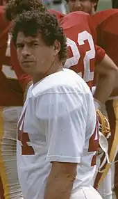 In 1976, the Jayhawks started 4-0 and were ranked 8th in the AP poll (the last time they would be ranked in 17 years), but after QB Nolan Cromwell suffered a season-ending knee injury against Oklahoma, KU finished 6–5. Moore was the first KU coach with back-to-back winning seasons since Jack Mitchell in 1961–62, but this success was followed by 4–6–1 in 1977 and then 1–10 in 1978.[26] In spite of dominating rivals Missouri and Kansas State, these struggles, failure to improve facilities, plus lagging attendance, led to Moore's firing as head coach after four seasons.[27] In 1983, KU hired Mike Gottfried away from Cincinnati to replace the Fambrough.[28] Gottfried had a mediocre tenure as the Jayhawks head coach, making modest improvement each season, with records of 4–6–1, 5–6 and 6–6.[29] His final record at KU was 15–18–1.[29]