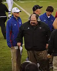Zenger then hired former Notre Dame head coach Charlie Weis, who at the time was serving as offensive coordinator at Florida, as the new Jayhawks head football coach in December 2011.[58] A big-name coach, Weis was popular among KU fans and was expected to lure recruits to KU and rebuild the football program.[59]