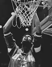 Alcindor performs ceremonial net cutting at Freedom Hall in Louisville in 1969 after a 20-point win over Purdue and Rick Mount in unprecedented third-straight national title en route to seven consecutive national championships for UCLA.