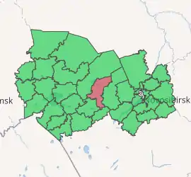 Kargatsky District (Russian: Карга́тский райо́н; Kazakh: Қарақат ауданы, Qaraqat aýdany) is an administrative[1] and municipal[4] district (raion), one of the thirty in Novosibirsk Oblast, Russia. It is located in the center of the oblast. The area of the district is 5,396 square kilometers (2,083 sq mi). Its administrative center is the town of Kargat.[1] Population: 18,207 (2010 Census);[2] 22,025 (2002 Census);[6] 25,150 (1989 Census).[7] The population of Kargat accounts for 55.2% of the district's total population.[2] Lake Ubinskoye extends into the district's northwest corner.