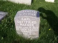 After being exiled from Germany, the Maesers went to London in June 1856,[4] where they were welcomed by members of the LDS Church. Maeser was called by the church to serve a German-speaking mission in London in July 1856.[3]: 130–131 [4] He and his family left London in May 1857; their ship arrived in Philadelphia in July. The Maeser's infant son, Karl Gustav Franklin Maeser, died as they arrived and was buried in Philadelphia.[3]: 155–163 [5]: 88