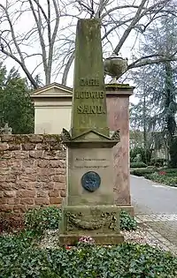 Karl Ludwig Sand (Wunsiedel, Upper Franconia (then in Prussia), 5 October 1795 – Mannheim, 20 May 1820) was a German university student and member of a liberal Burschenschaft (student association). He was executed in 1820 for the murder of the conservative dramatist August von Kotzebue the previous year in Mannheim. As a result of his execution, Sand became a martyr in the eyes of many German nationalists seeking the creation of a united German national state.