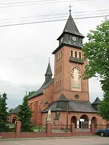 Karolina Kózka was born on 2 August 1898 in a hamlet near the village of Zabawa, Lesser Poland, at that time occupied by Austria-Hungary. She was the fourth of eleven children born to peasant farmers, Jan Kózka and Maria Borzęcka. She was baptized on 7 August at the local parish church of Saint John the Baptist.[1][3] Her childhood was spent on the family farm. From 1906 until 1912 she attended the local primary school and had further part-time schooling from 1912 to 1913.[3] She would often gather neighbours and relatives and invite them to read the Bible together under a pear tree near her home. Kózka loved reciting the rosary using beads her mother had given her. She would fall asleep praying to Mary.[1] Kózka would pray on her long walk to Mass. Her uncle Franciszek Borzęcki was an inspiration to her and she would help him in his role of librarian. She also helped out teaching the catechism to children of the parish. During Lent she would lead her family in singing about the Passion of the Lord and at Christmas would intone carols. Some of the villagers referred to her home as "the little church".[2]