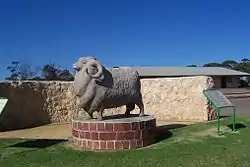 Karoonda was founded on wheat growing early in the 20th century (proclaimed on 11 December 1913), but the cleared land is also suitable for raising merino sheep. The Karoonda Development Group instigated and built a larger-than-life sculpture of a Merino ram in the park in the main street to emphasise this. There are even seats with rams heads dotted around the town. A number of other agricultural and horticultural industries are now also represented in the district. Each year the Karoonda Farm Fair is held, a two-day event attracting over 10,000 visitors to the town.