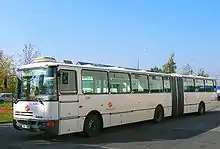 Karosa B 961 is a model of the Karosa 900 series. The B 961 is derived from its predecessor the Karosa B 941, and also unified with city bus models such as the B 951 and the B 952. The body was assembled to the skeleton, which has undergone a dip stage, sheets were galvanized and painted and then to have it installed additional components. The body is made of two rigid sections linked by a pivoting joint. The body is semi-self-supporting with frame and engine with automatic gearbox is placed in the rear part. The engine drives only the third C axle, meaning that this articulated bus has a pusher configuration. The front, middle and rear axles are solid. All the axles are mounted on air suspension. On the right side are four doors (first and last are narrower than middle doors). Inside are used plastic Vogelsitze or Ster seats. The driver's cab is separated from the rest of the vehicle by a glazed partition. In the middle part and in the rear part, is room for a pram or wheelchair. Buses have an enclosed design of the turntable.
