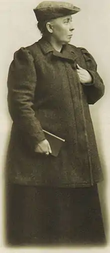 As a lecturer, she was initially engaged in the organizing of the working class women, but expanded to include all the spheres of the working class movement. She placed her main focus in trade union activity, organizing the workers of the textile industry, railroad, miners and others within the trade union, as she regarded strikes as an efficient method to achieve suffrage.[3] She was engaged in Swedish trade union work from 1898, and a member of the comity organizing the great strikes of 1905, 1908 and 1911. With her powerful agitation, she reportedly had the ability to awake great enthusiasm: her fiery, aggressive and drastic speeches made her one of the most popular and efficient agitators of the Swedish working class movement, and her ability to enthusiast the masses and give them courage to keep fighting during conflicts with the authorities and in the midst of disappointments, especially during the great strikes of 1902 and 1909, has been described as an unusual one.[4]