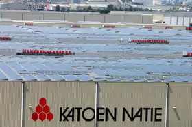 In 2009 Katoen Natie installed 800.000 m2 of solar panels on the roofs of its warehouses in Kallo, Antwerp, Genk and Ghent. These installations produce a yearly amount of about 35 gigawatt hours, accounting for 25% of the total solar energy capacity of the Flemish region. The electricity that is generated with these solar panels is mainly used for the Katoen Natie's own electricity supply. The remaining energy is transferred back to the electricity net.