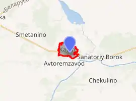 It is situated to the west of the city of Smolensk (about 18 km from its center) and circa 60 km from the Russian borders with Belarus. It has a station on the Berlin-Warsaw-Minsk-Moscow international railway line.