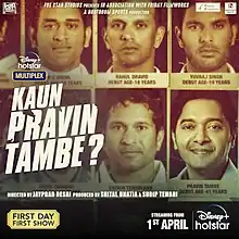 Kaun Pravin Tambe? (English - 'Who is Pravin Tambe?') is a 2022 Indian Hindi-language biographical sports drama film directed by Jayprad Desai. It is based on the life of Indian cricketer Pravin Tambe. The film stars Shreyas Talpade and premiered on Disney+ Hotstar on 1 April 2022.[1]