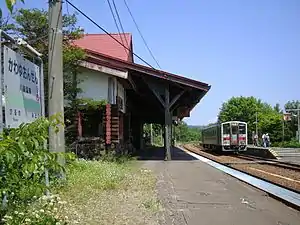 The station has two side platforms, one handling trains traveling north toward Abashiri, and another handling trains going south to Kushiro. Next to the northbound platform is a station building.