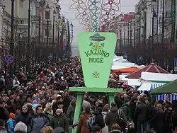 Kaziuko mugė or Saint Casimir's Fair[1] is a large annual folk arts and crafts fair in Vilnius, Lithuania, dating to the beginning of the 17th century. The fair is traditionally held in city's markets and streets on the Sunday nearest to 4 March (Feast of St. Casimir), the anniversary of Saint Casimir's death. In Lithuanian, Kaziukas is a diminutive of Casimir. Today, Saint Casimir's fair also features music, dance, theater performances; it attracts tens of thousands of visitors and many craftsmen from across Lithuania as well as from neighbouring countries such as Latvia, Russia, and Poland.[2] In recent years, the fair has expanded into other cities in Lithuania, Belarus, Poland.
