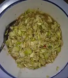 | Main ingredients | Edible banana flower, bird's eye chilli, shrimp paste, salt, sugar, leatherback bamboo, cermai, kelempong, cedong, jackfruit, guava, pineapple and coconut |