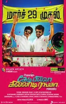 Kedi Billa Killadi Ranga is a 2013 Tamil-language political comedy drama film written, directed and co-produced by Pandiraj. It features Vimal and Sivakarthikeyan in lead roles, alongside Bindu Madhavi and Regina Cassandra. Yuvan Shankar Raja composed the soundtrack. The film released on 29 March 2013 and received positive responses from critics as well as audiences.[2][3] It successfully completed 100 days in many theatres in Tamil Nadu. The film was remade in Kannada as Katte.[4]