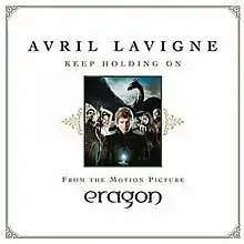 The song was written by Lavigne and Lukasz "Dr. Luke" Gottwald; Luke also produced the single. It was the first single from the soundtrack and premiered on radio stations across North America in November 2006, receiving positive reviews from critics.[4]The song was used as the musical theme for the 2006 film Eragon. "Keep Holding On" was one of the songs short-listed for the "Best Original Song" category at the 79th Academy Awards, but it was not among the final nominees. The song was also ranked on the iTunes Australia top 500 at 403.[5]