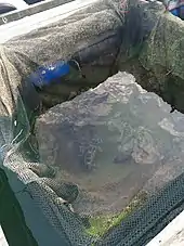 Structurally, kelongs are often built without the need for nails, using rattan to bind tree trunks and wooden planks together. The decks of some kelongs have open spaces with nets that hang partially in the water, allowing for captured fish to be kept live until they are sold or cooked. Anchored into the sea bed using wooden piles of about 20 m in length and driven about six metres into the sea, they are usually sited in shallow water, although some can be found in deeper waters. Some kelongs are less isolated and are connected to land via a wooden gangway. Other variants of kelongs can be mobile, with some portion of the building floating freely. Some buildings are large, being made up of groups of kelongs joined together into a massive offshore community.