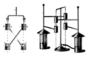 William Thomson (Lord Kelvin) used this foundation of accumulated knowledge to, in 1859, create an apparatus involving the interaction of a stream of water with the Earth's static electric field to cause charge separation and subsequent measurement of charge to make atmospheric electricity measurements.[9]