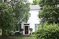 "Its main (southern) facade has five equally spaced bays with the central one at grade being a transomed, side-lighted entrance door. Originally there was a square columned entrance portico with simple Greek Revival detail.
