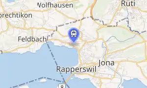 Kempraten railway station (German: Bahnhof Kempraten) is a railway station in Switzerland, situated near the village of Kempraten in the municipality of Rapperswil-Jona. The station is located on the Lake Zurich right bank railway line.[5][1]