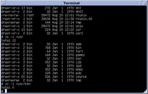 Thompson was hired by Bell Labs in 1966.[5] In the 1960s at Bell Labs, Thompson and Dennis Ritchie worked on the Multics operating system. While writing Multics, Thompson created the Bon programming language.[6][7] He also created a video game called Space Travel. Later, Bell Labs withdrew from the MULTICS project.[8] In order to go on playing the game, Thompson found an old PDP-7 machine and rewrote Space Travel on it.[9] Eventually, the tools developed by Thompson became the Unix operating system: Working on a PDP-7, a team of Bell Labs researchers led by Thompson and Ritchie, and including Rudd Canaday, developed a hierarchical file system, the concepts of computer processes and device files, a command-line interpreter, pipes for easy inter-process communication, and some small utility programs. In 1970, Brian Kernighan suggested the name "Unix", in a pun on the name "Multics".[10] After initial work on Unix, Thompson decided that Unix needed a system programming language and created B, a precursor to Ritchie's C.[11]