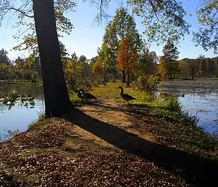 To meet the needs of the expanding population of Washington, D.C., in 1942 the Kenilworth Dump was created on the riverside south of the Kenilworth neighborhood, where piles of garbage were burned in the open space.[2][3] The community complained about the pollution from open burning, and Lady Bird Johnson became involved in the campaign to close the dump.[3] In February 1968 a boy was accidentally burned to death at the site. Shortly afterwards the city banned the open fires and the Dump became a sanitary landfill instead. In the early 1970s, the Dump closed and the land was converted to a park.[2]