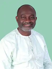 Kennedy Ohene Agyapong (born June 16, 1960) is a Ghanaian politician and businessman who represents Assin Central in parliament for the New Patriotic Party.[2][3] He was first elected a member of parliament in 2000 to the seat of Assin North.[4] He retained his seat in the 2004[5] and 2008 parliamentary elections.[6] In 2012 he was elected in the new seat of Assin Central and was re-elected in 2016. He also retained his seat in the 2020 general elections.[7] He is currently the Chairman of the Parliament's Defense and Interior Committee.[8]