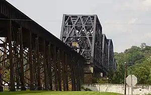 Kenova is a city in Wayne County, West Virginia, United States, situated at the confluence of the Ohio and Big Sandy Rivers. Located near a tristate border, the city's name is a portmanteau of Kentucky, Ohio, and Virginia (Va).[6] Founded in 1859 but not incorporated until 1894, the town's early history and development was centered on the railroad industry. It is home to a major Norfolk Southern Ohio River Bridge. CSX Transportation's former Chesapeake and Ohio Kanawha Subdivision travels through the town as well.