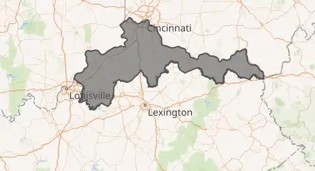 Kentucky's 4th congressional district is a congressional district in the U.S. state of Kentucky. Located in the northeastern portion of the state, it is a long district that follows the Ohio River. However, the district is dominated by its far western portion, comprising the eastern suburbs of Louisville and Northern Kentucky, the Kentucky side of the Cincinnati area.