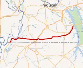 | Murray | 62.305 | 100.270 | Southern terminus of KY 1660 | ||