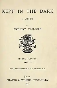 Kept in the Dark is a novel by the 19th-century English novelist Anthony Trollope. One of his lesser and later works, it nonetheless has interest. It was published in eight monthly installments in Good Words in 1882, and also in book form in the same year.