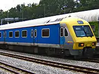 The MR began to modernize the equipment with the ordering of diesel locomotives and railcars to replace steam hauled services, and the first diesel locomotive entered service in 1957. The railcars entered service in 1960, initially on short haul services.[2] Rapid services were introduced later, cutting travel times from Singapore to Kuala Lumpur down to six hours, which was competitive at the time.[3] MR and later KTM continued ordering more diesel locomotives through the decades, rendering the old steam locomotives redundant. The last steam locomotive was withdrawn from service in 1974.